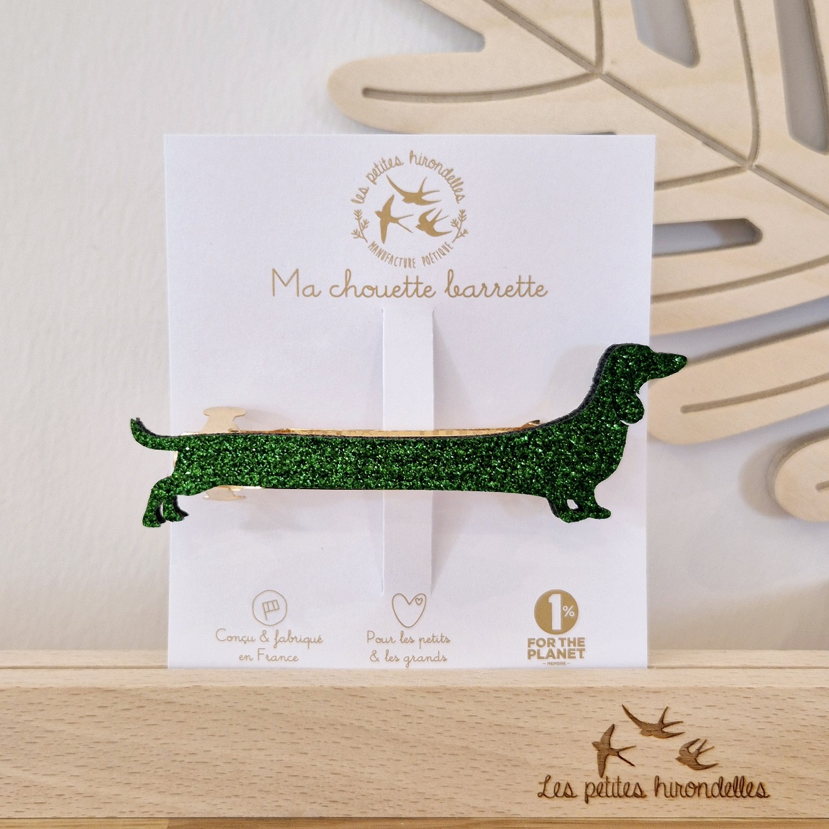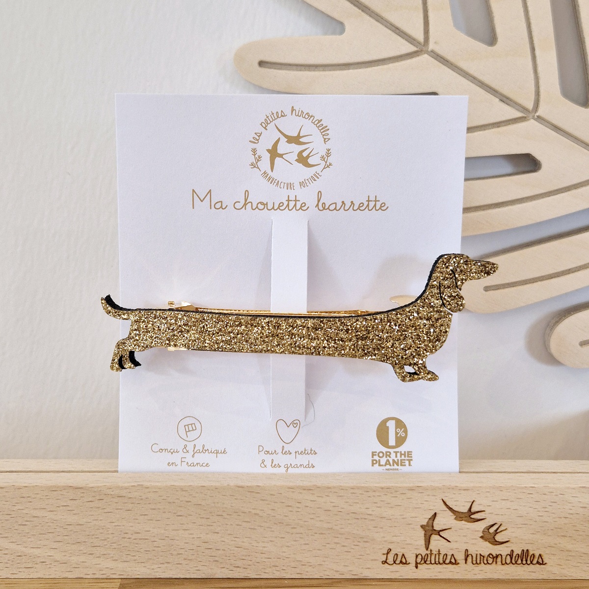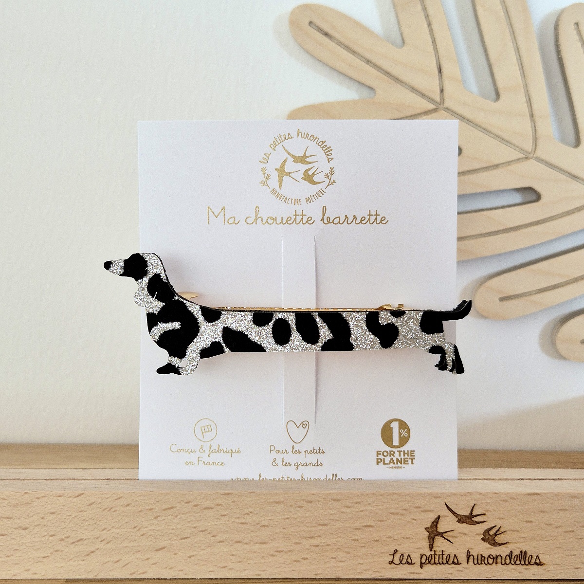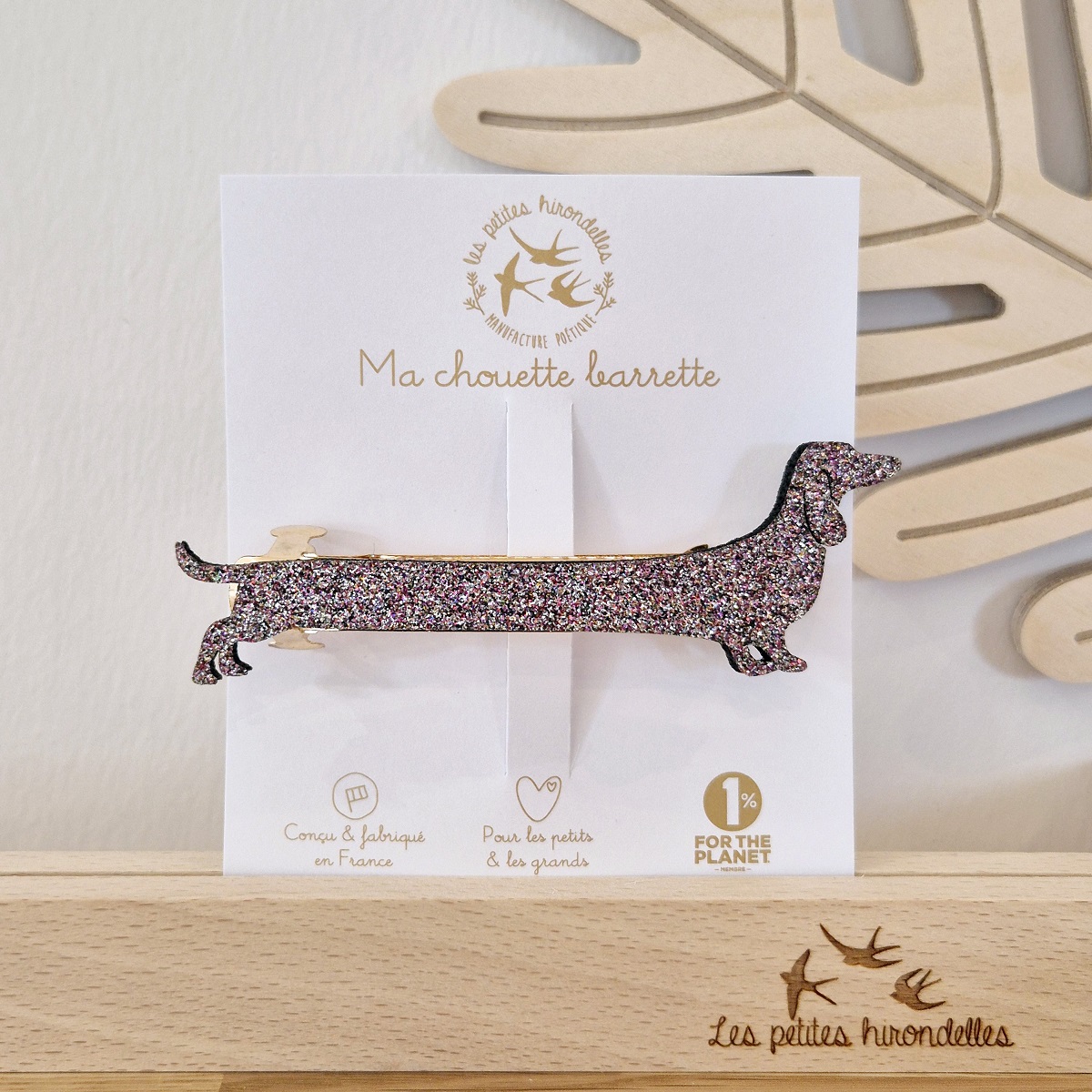 Cette jolie barrette pailletée est en feutrine, et est dessinée et fabriquée en France !