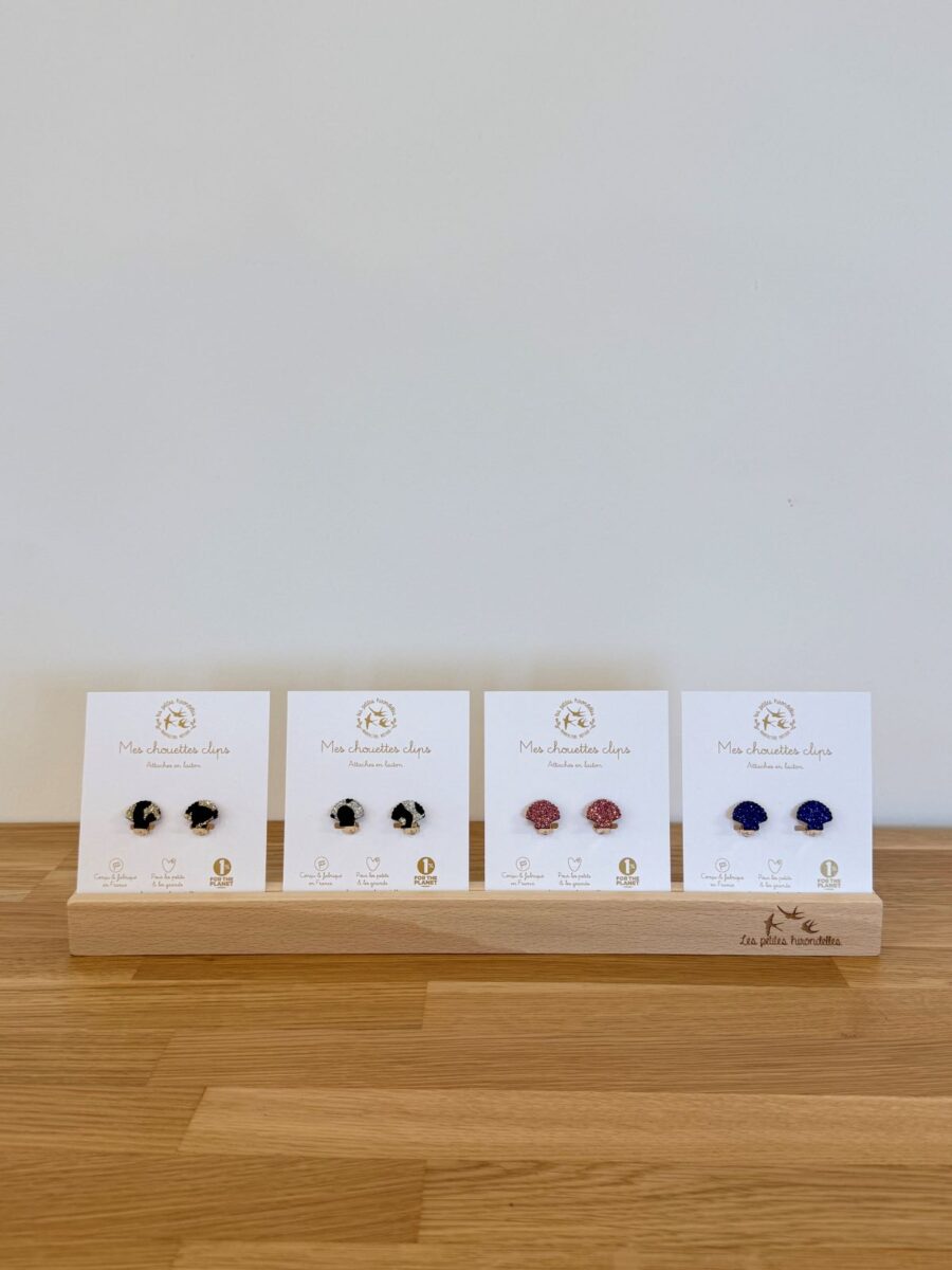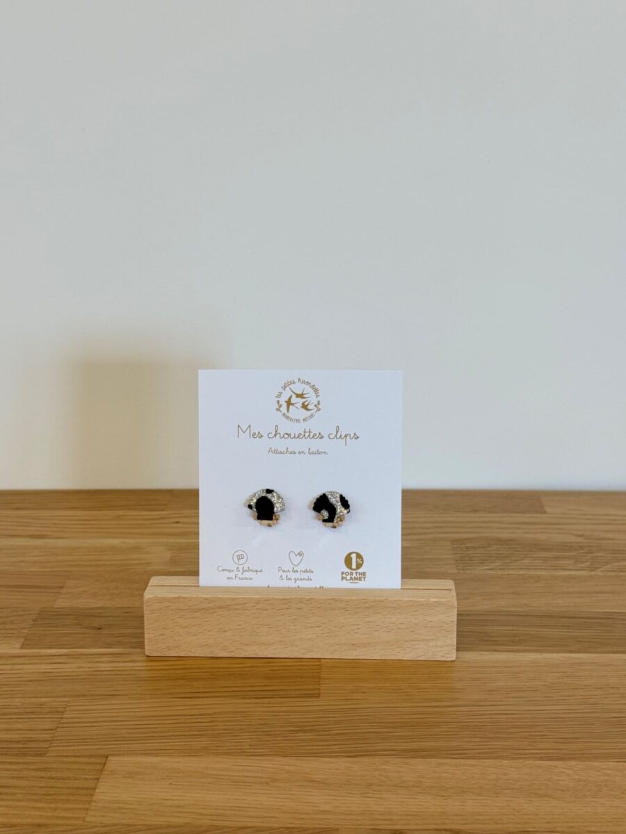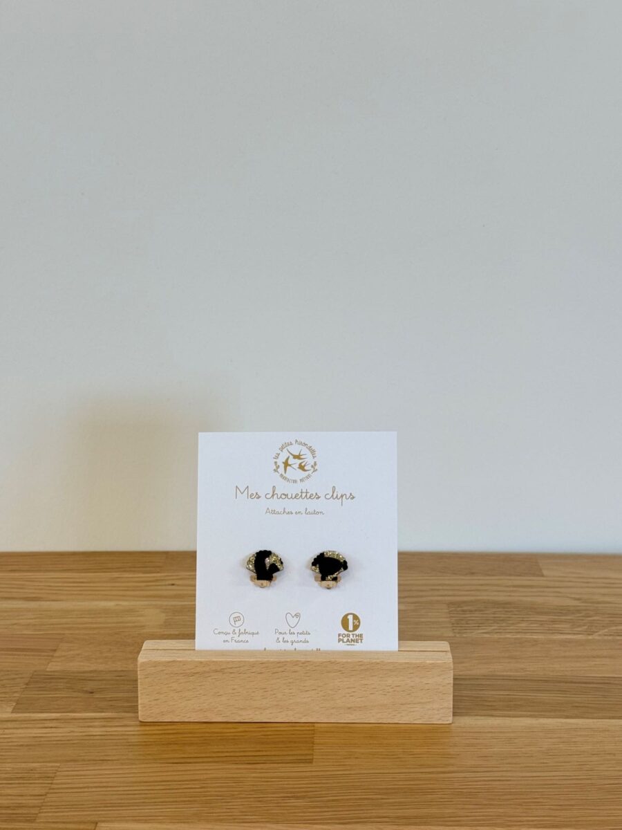 Ces boucles à clip, composées d’une attache en laiton et d’une forme en feutrine pailletée, sont légères et agréables à porter.