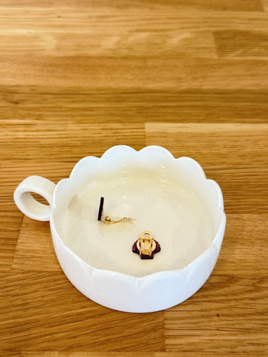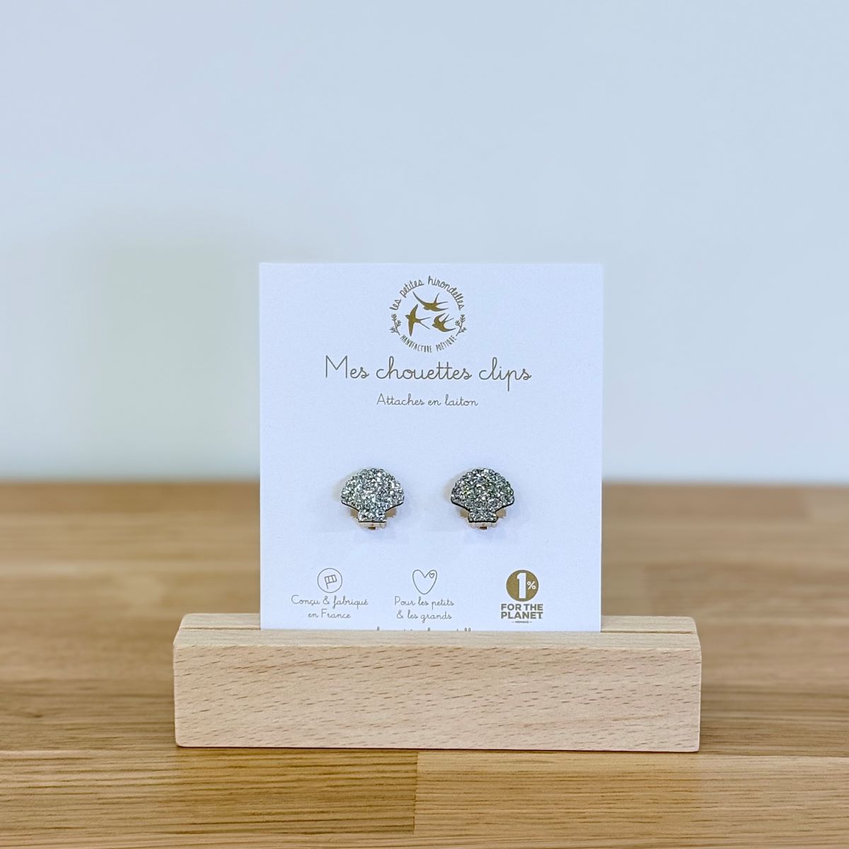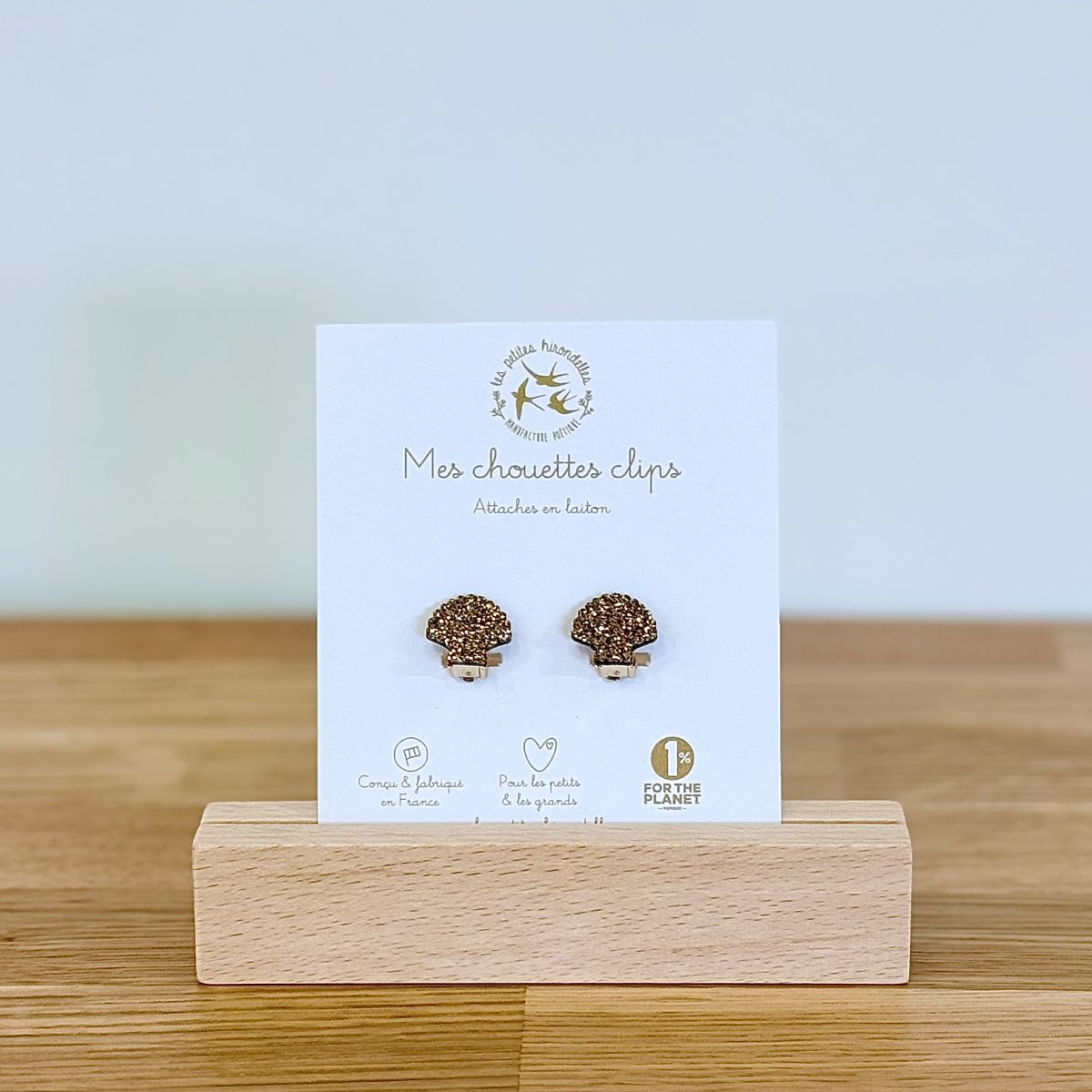 Ces boucles à clip, composées d’une attache en laiton et d’une forme en feutrine pailletée, sont légères et agréables à porter.