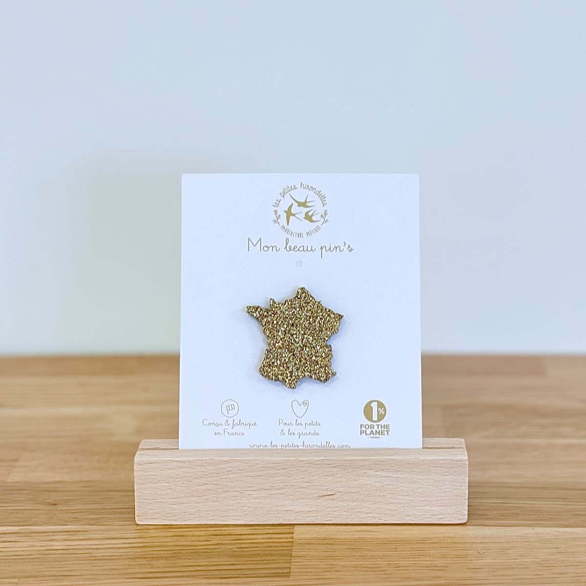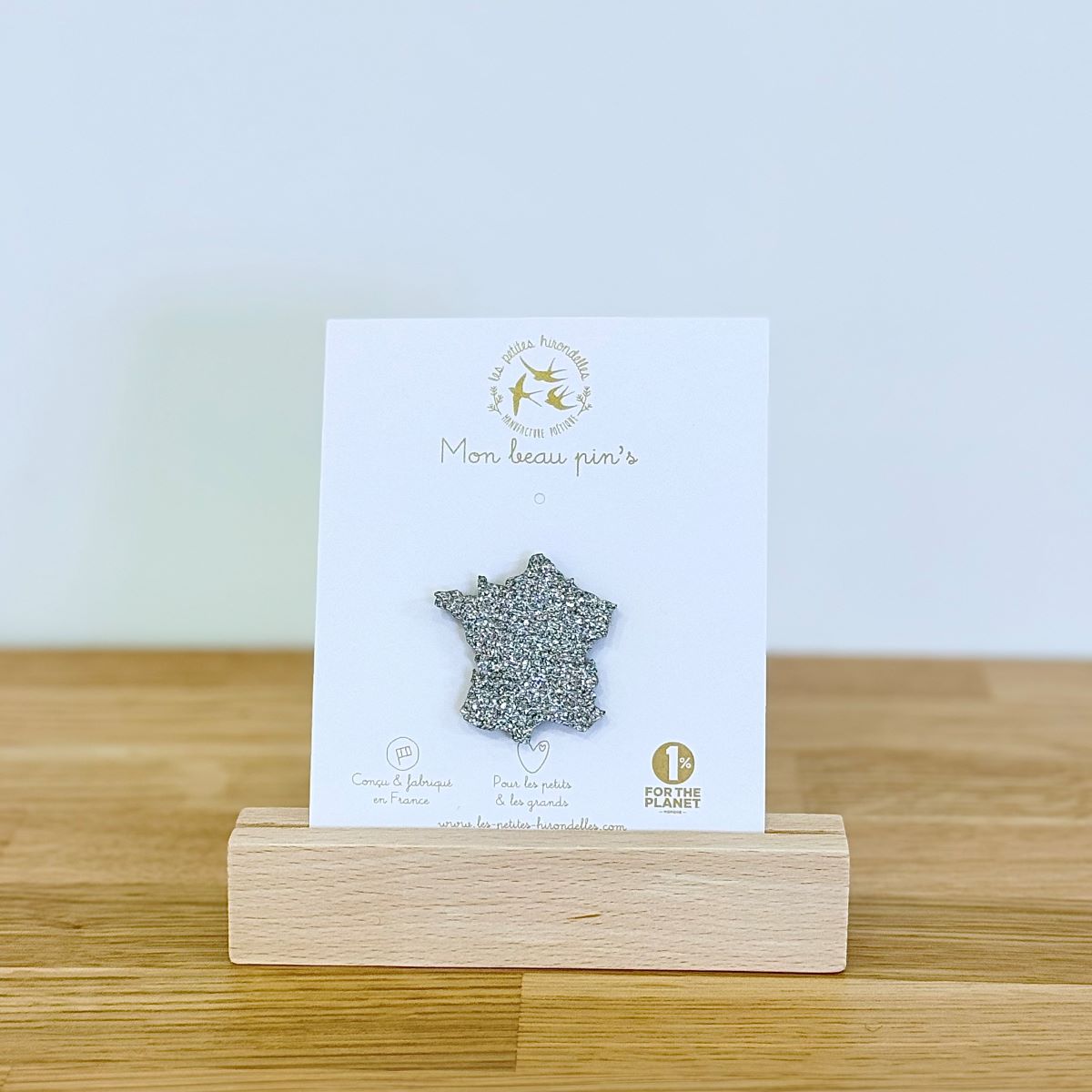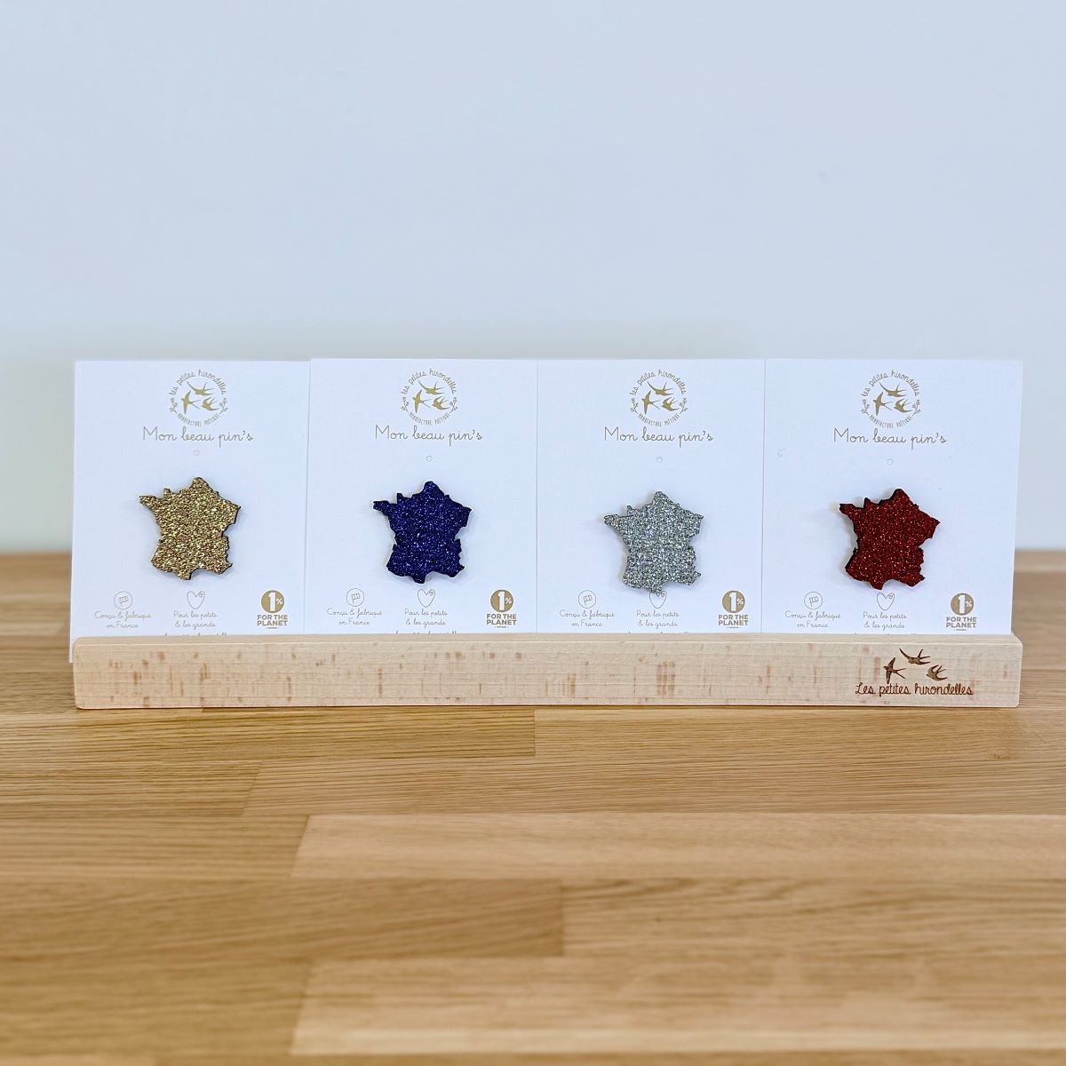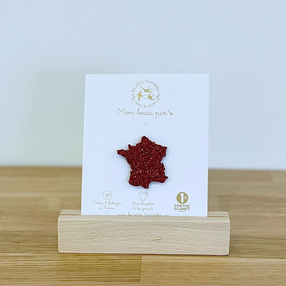 Ce pin’s France est en feutrine et paillettes, avec une attache métallique. Il a été dessiné et fabriqué dans notre atelier près d’Annecy, en France.