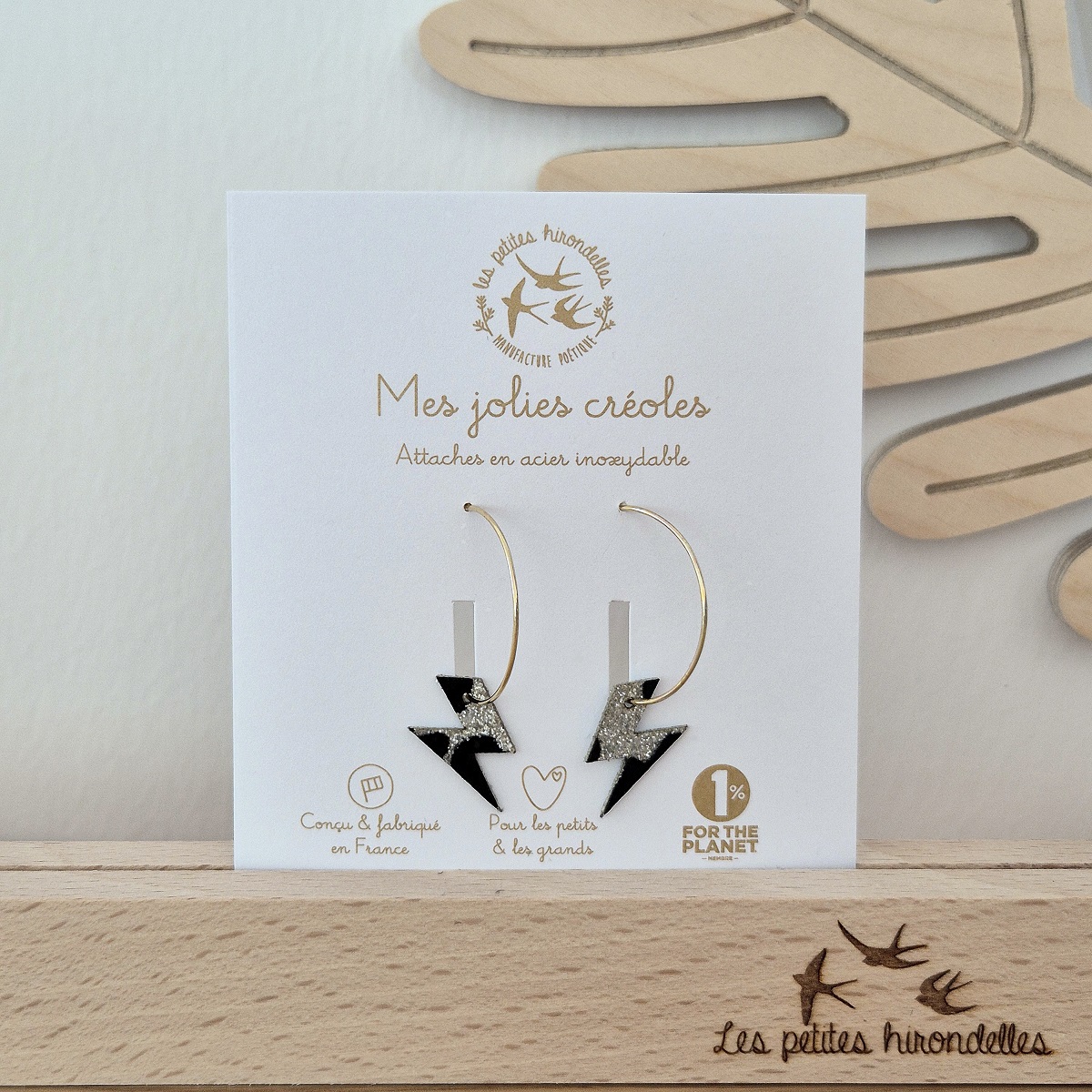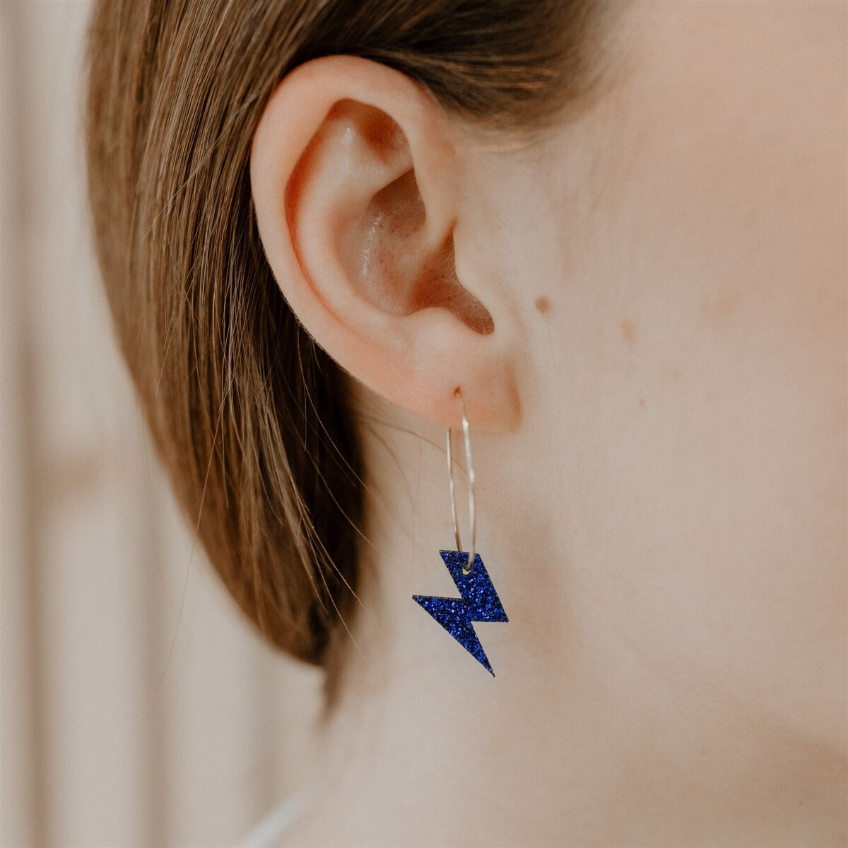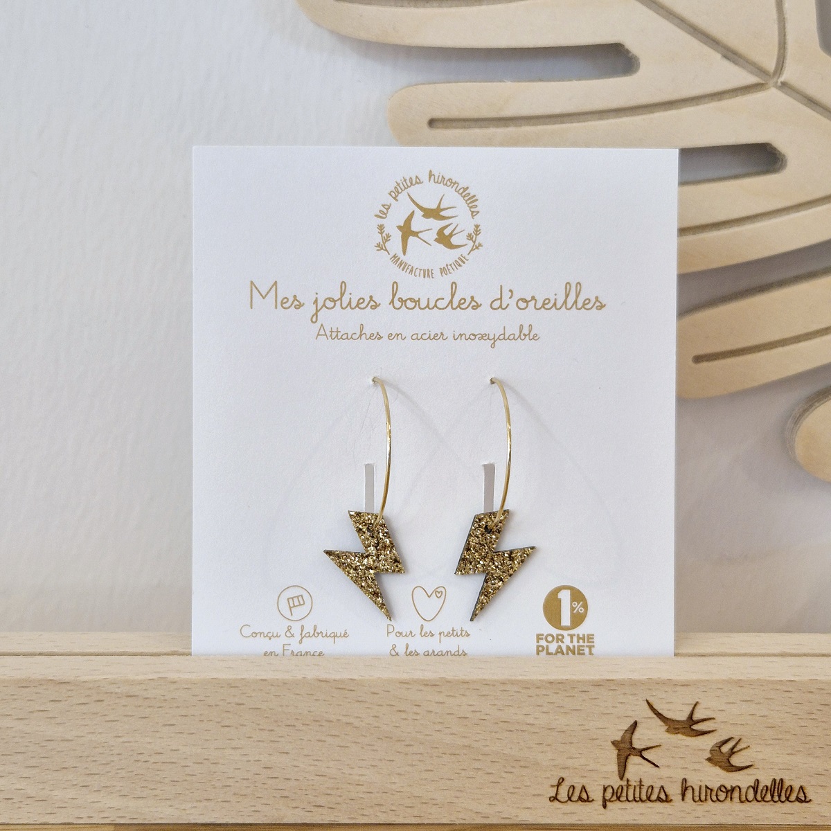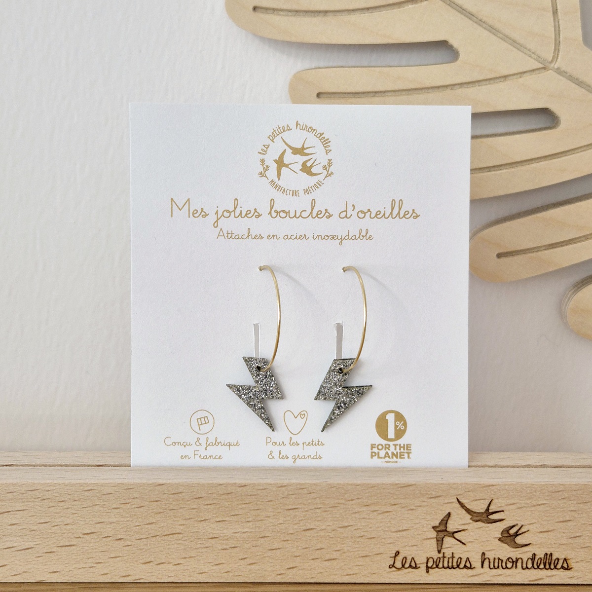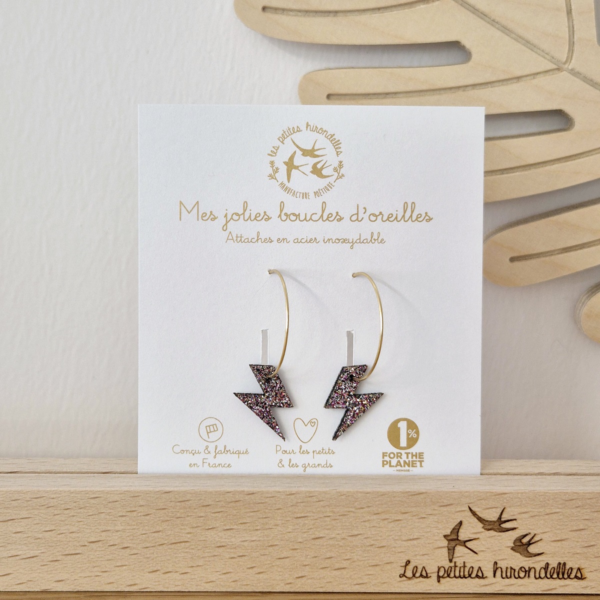 Ajoutez une touche de nature et de poésie à votre style avec ces magnifiques créoles pailletées en forme d’éclair.