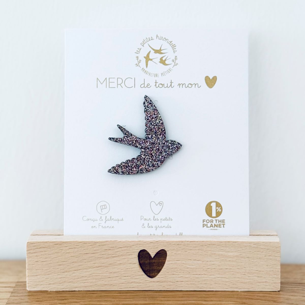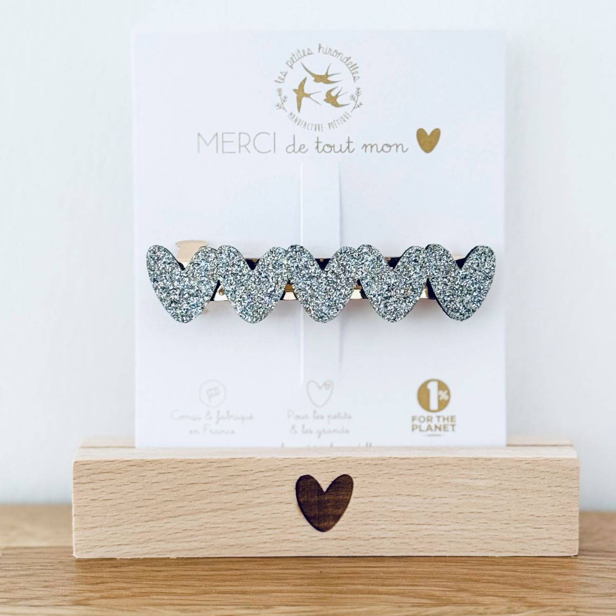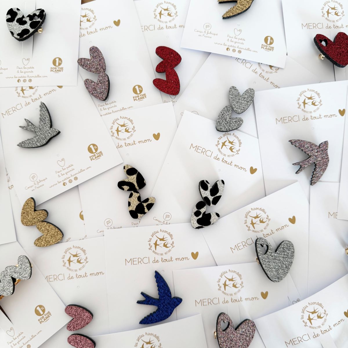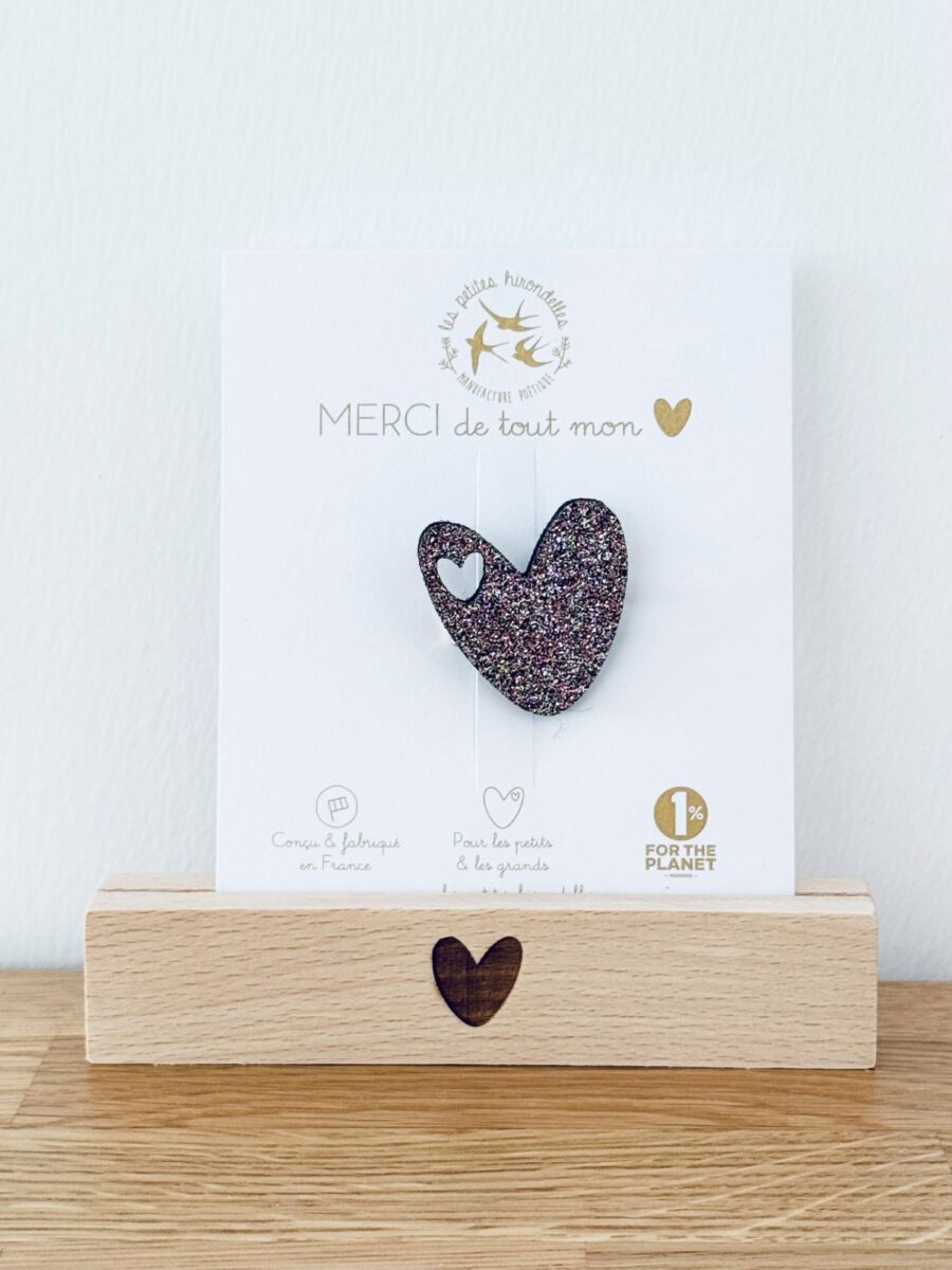 Barrette cœur, broche cœur, pin’s hirondelle ou pin’s cœurs à partager… chaque modèle apporte sa touche douce et lumineuse.