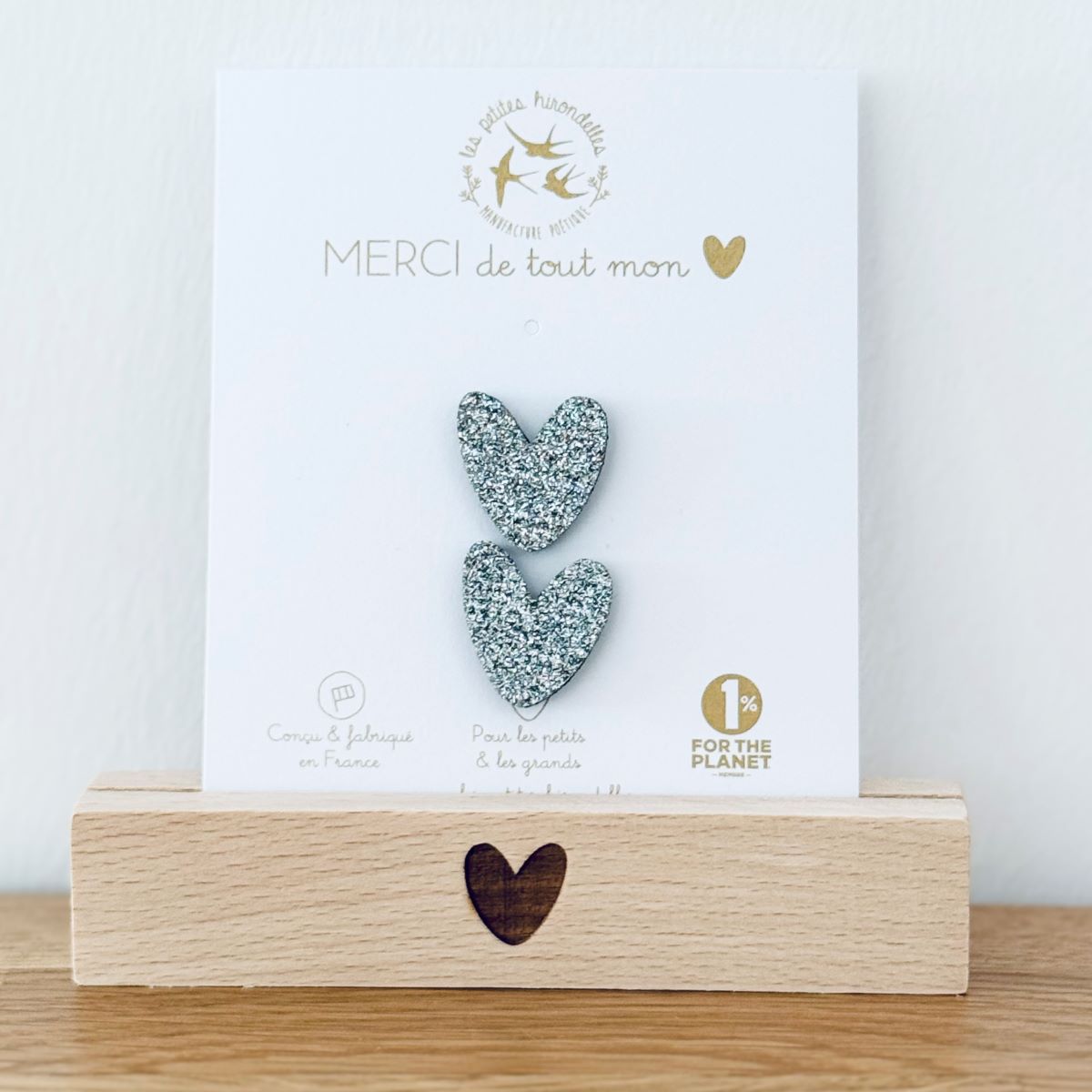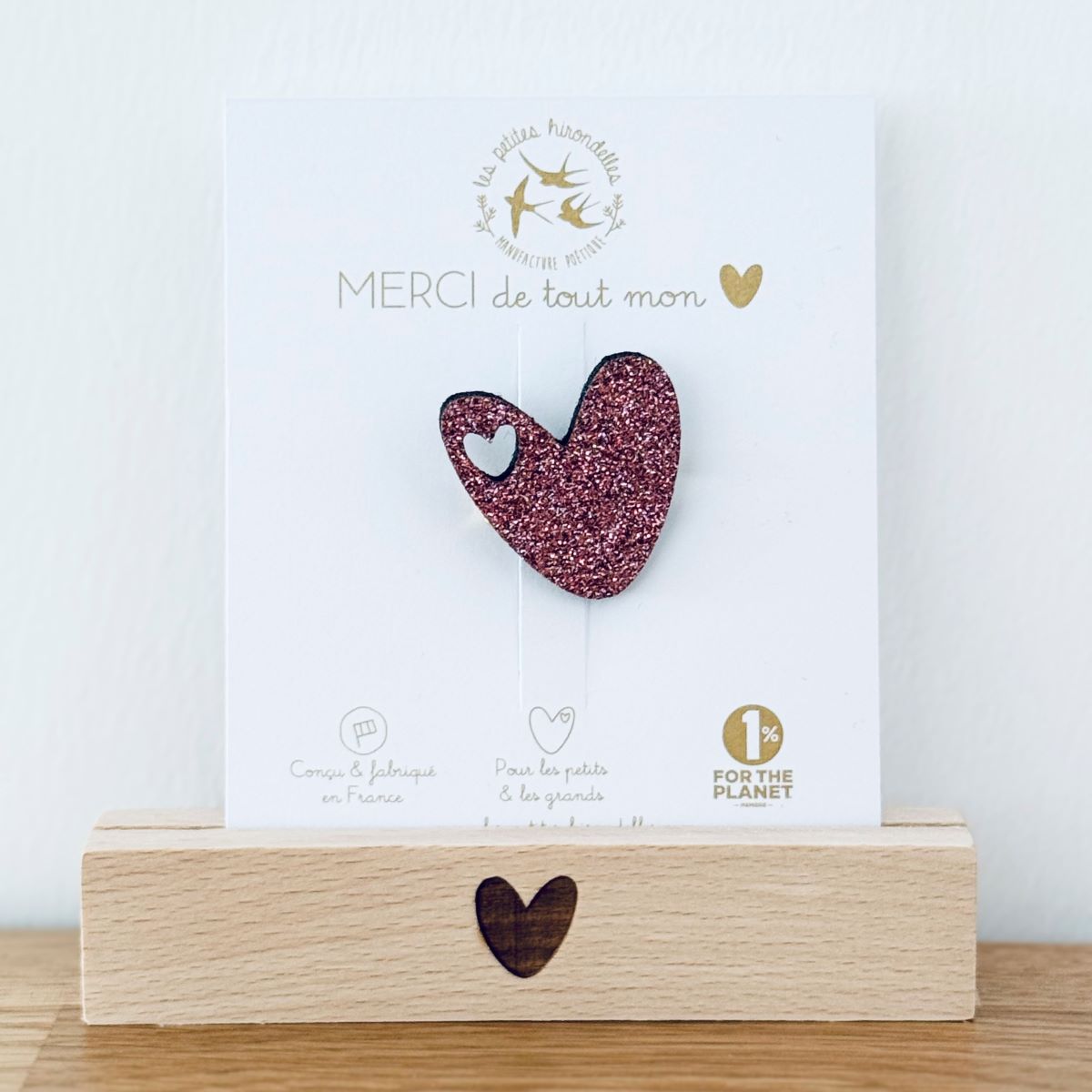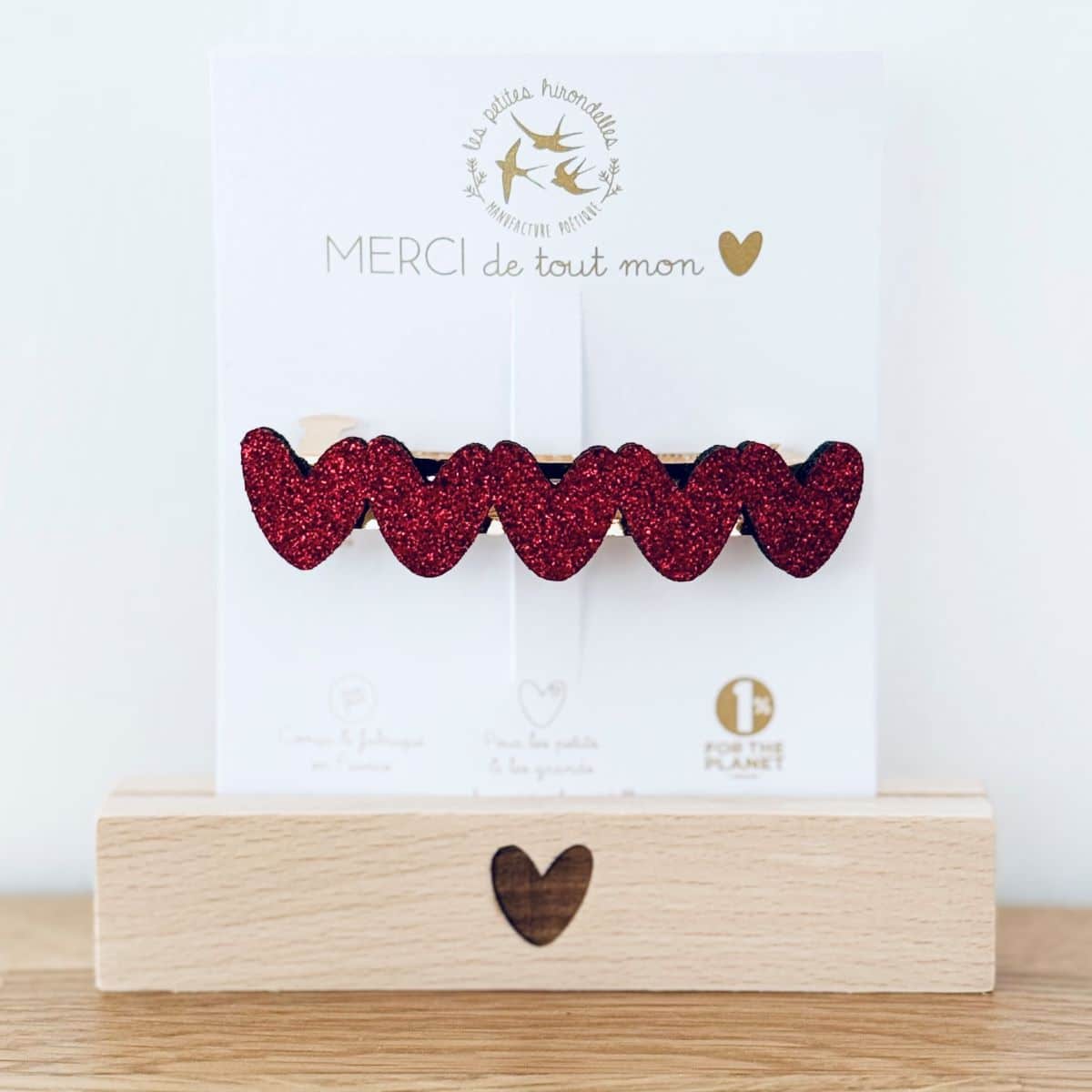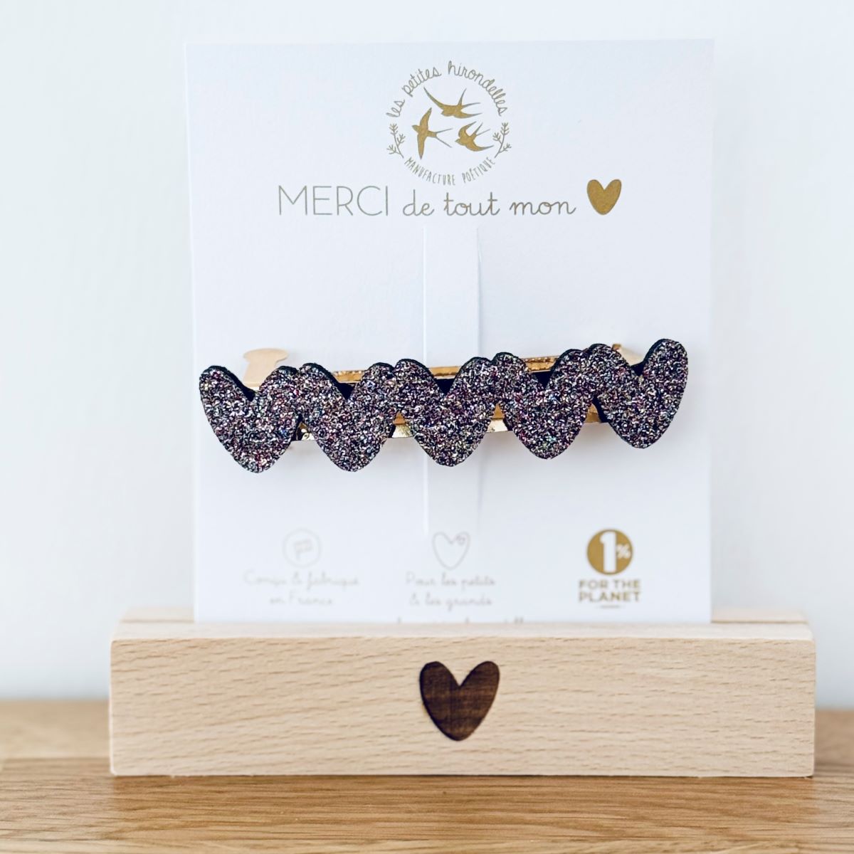 Barrette cœur, broche cœur, pin’s hirondelle ou pin’s cœurs à partager… chaque modèle apporte sa touche douce et lumineuse.