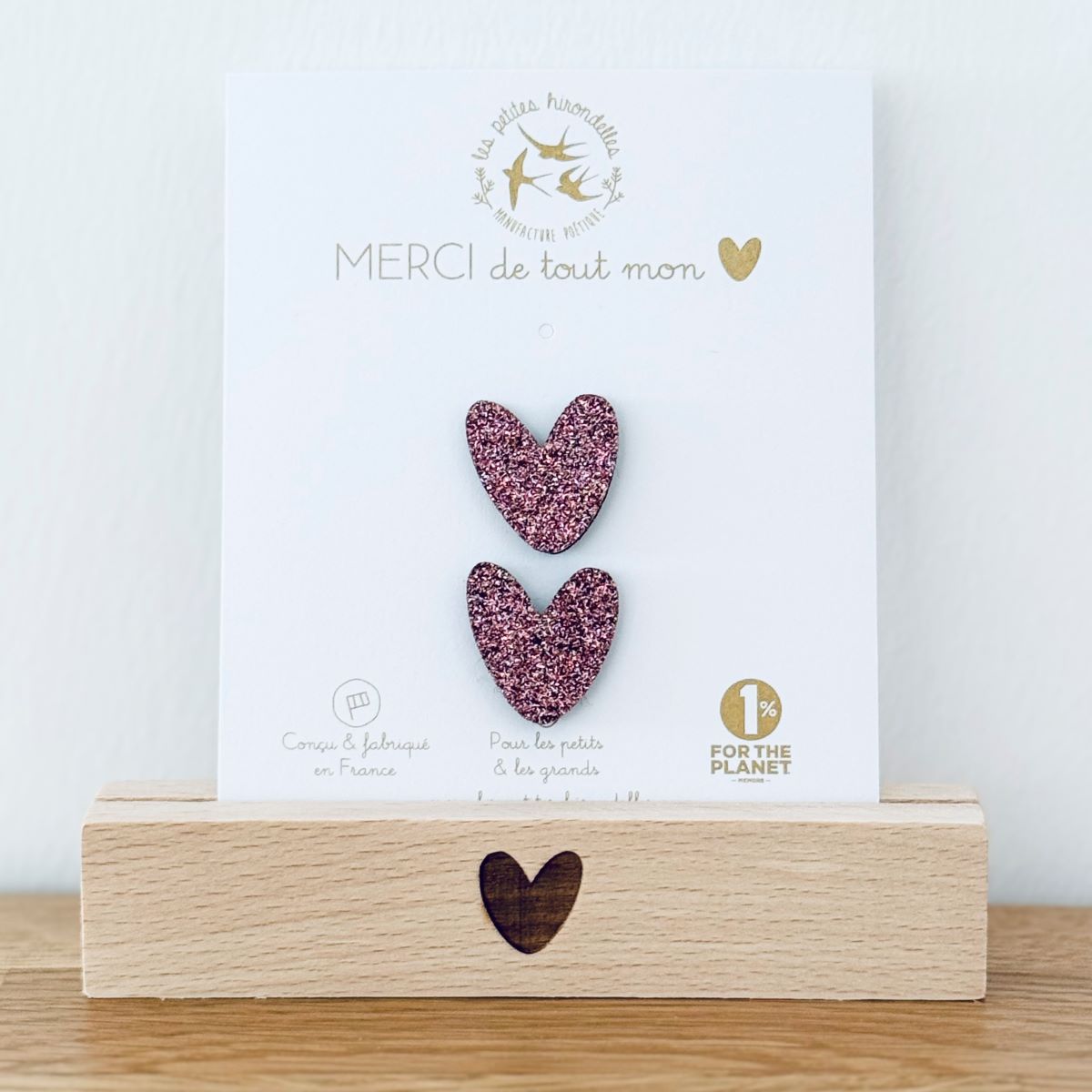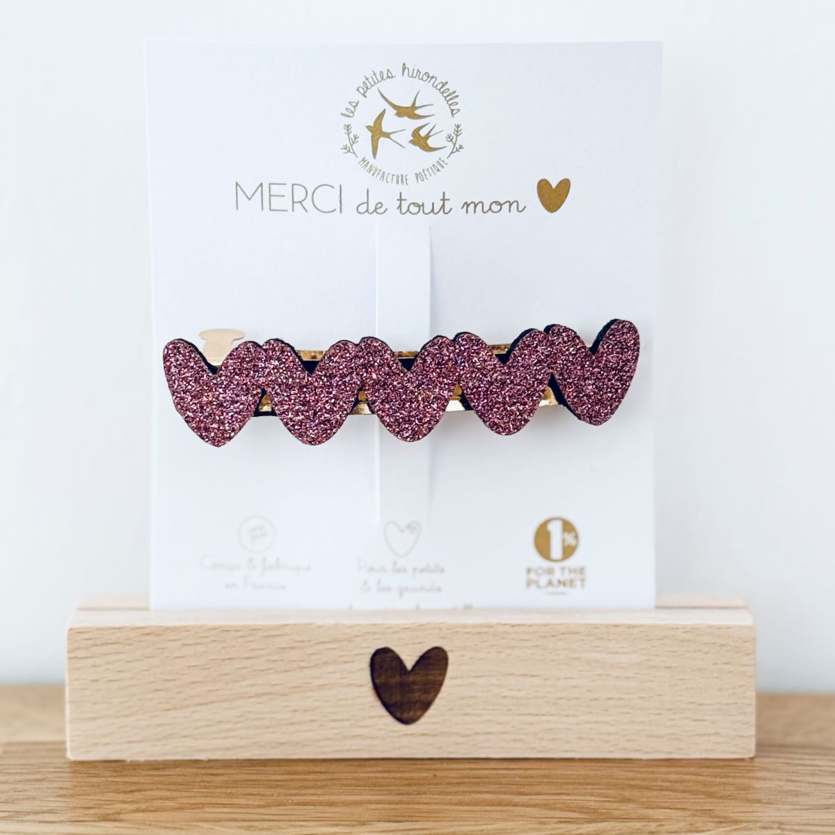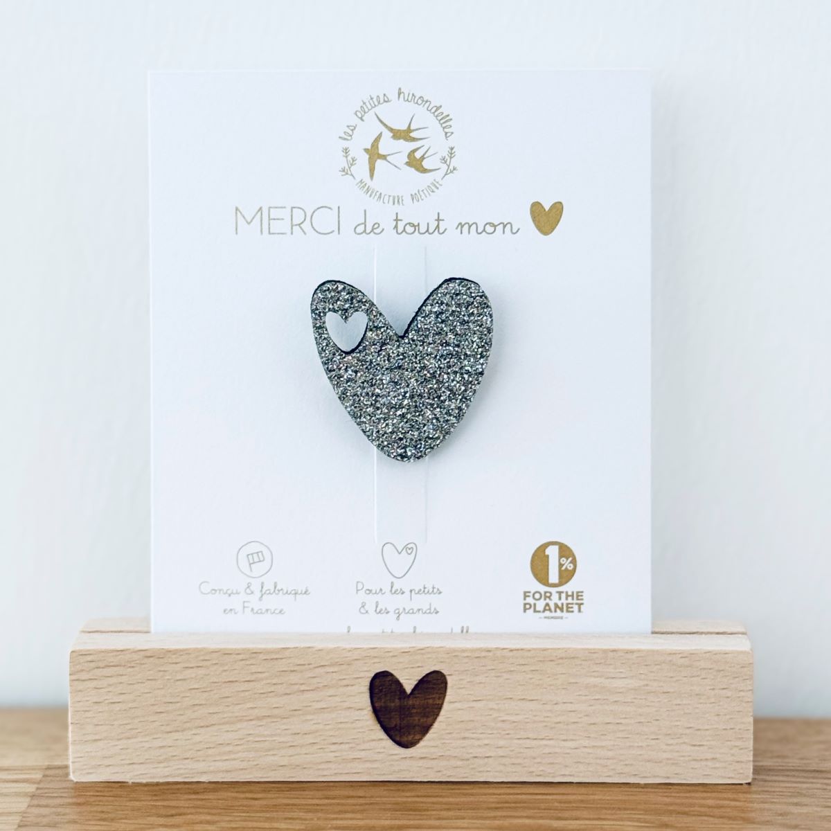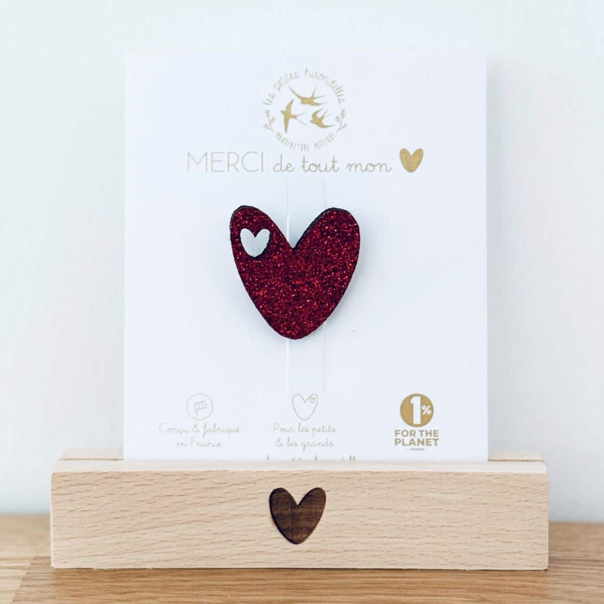 Barrette cœur, broche cœur, pin’s hirondelle ou pin’s cœurs à partager… chaque modèle apporte sa touche douce et lumineuse.