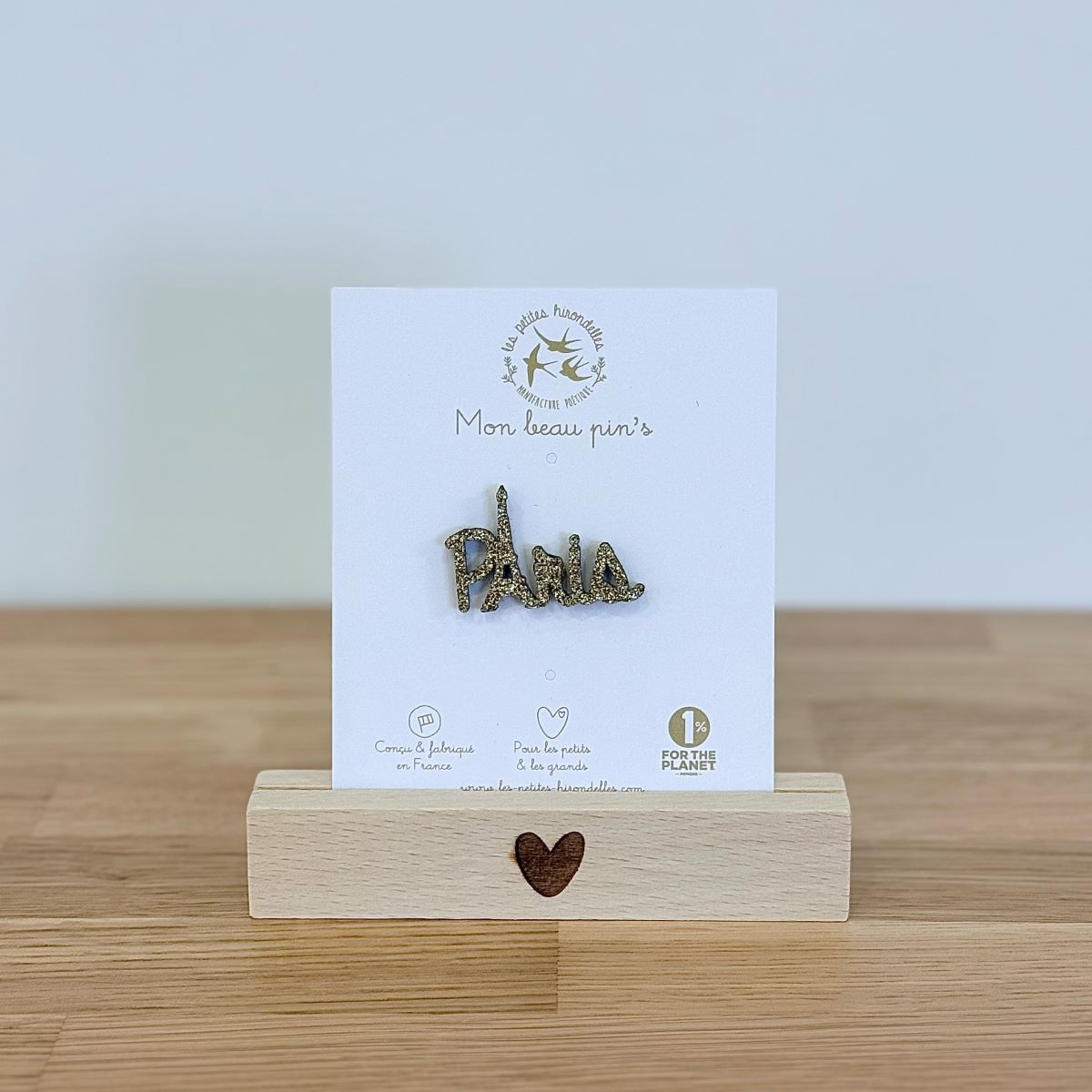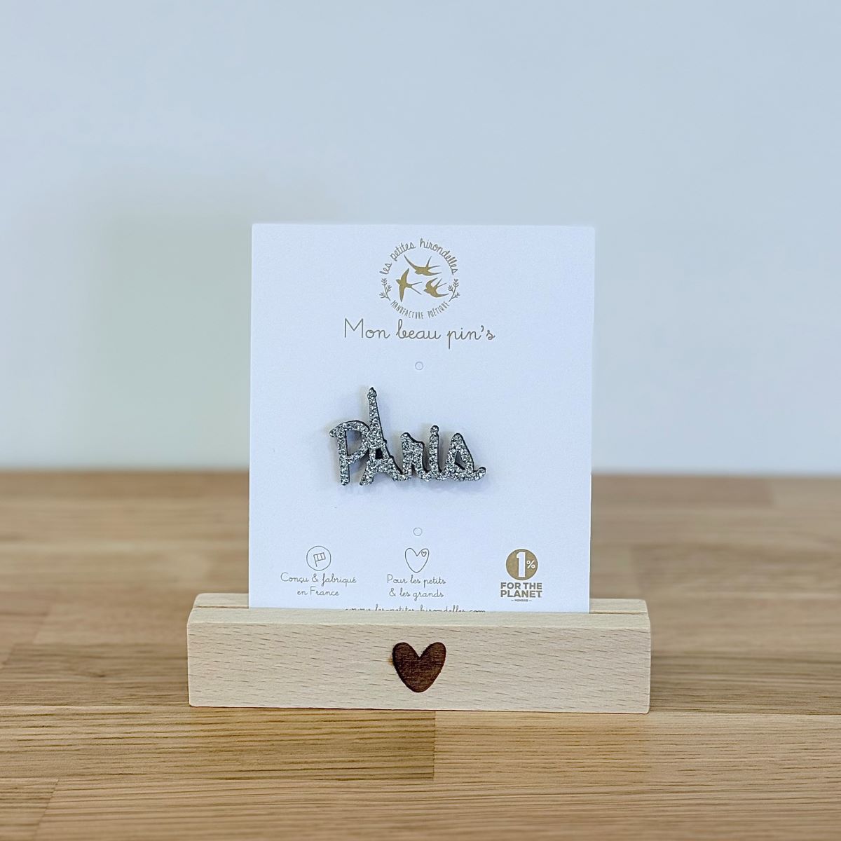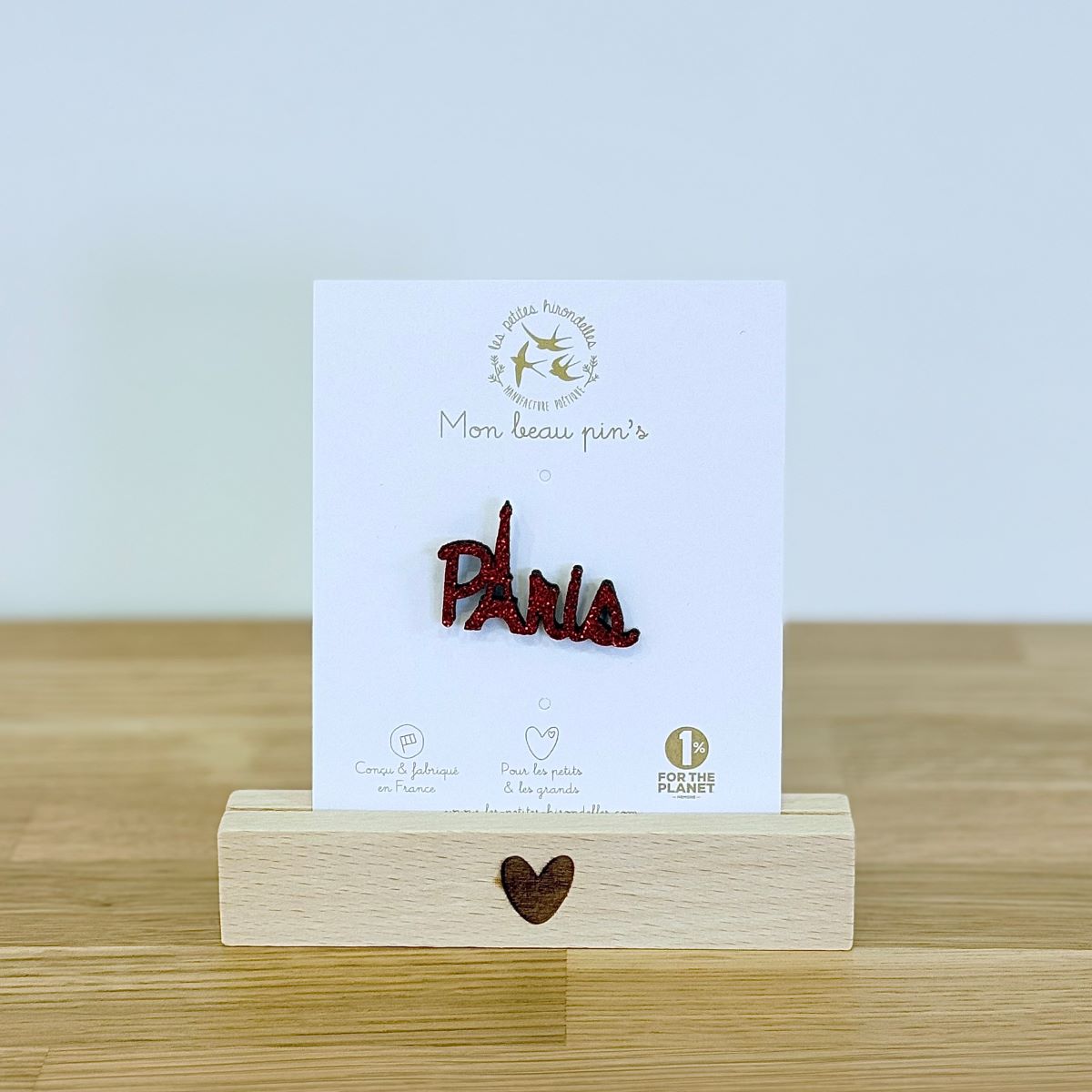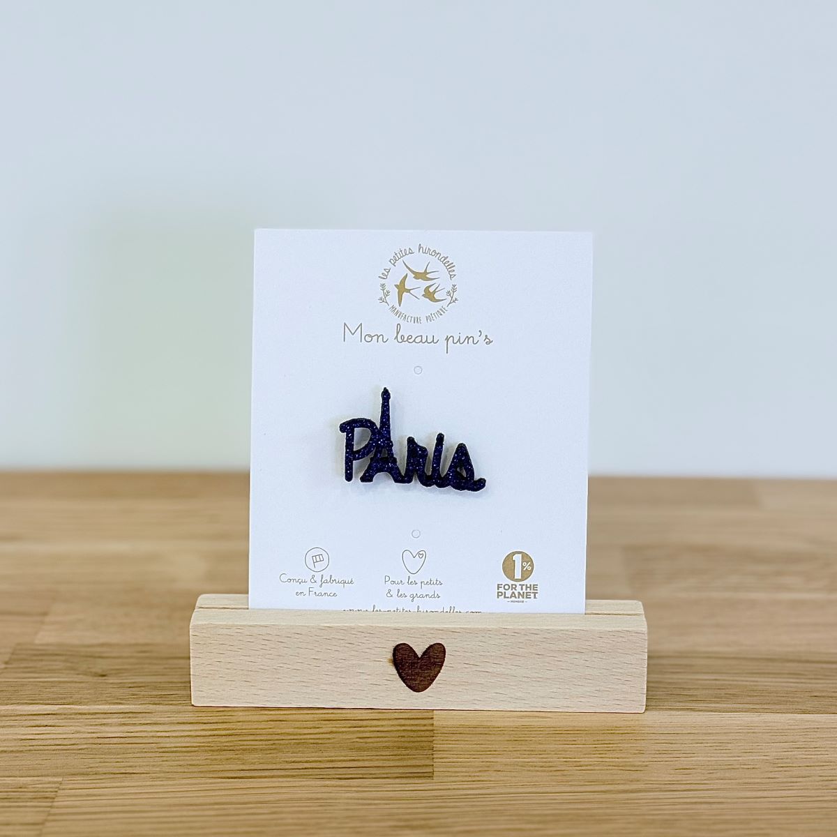 Ce pin’s Paris Eiffel est en feutrine et paillettes, avec une attache métallique. Il a été dessiné et fabriqué dans notre atelier près d’Annecy, en France.