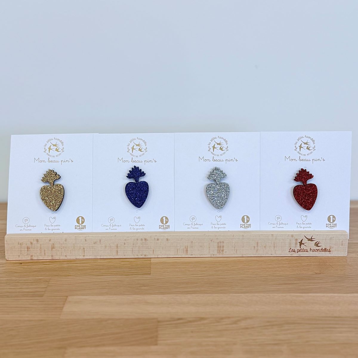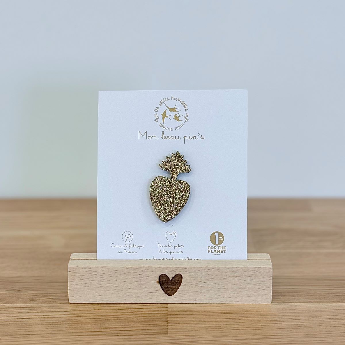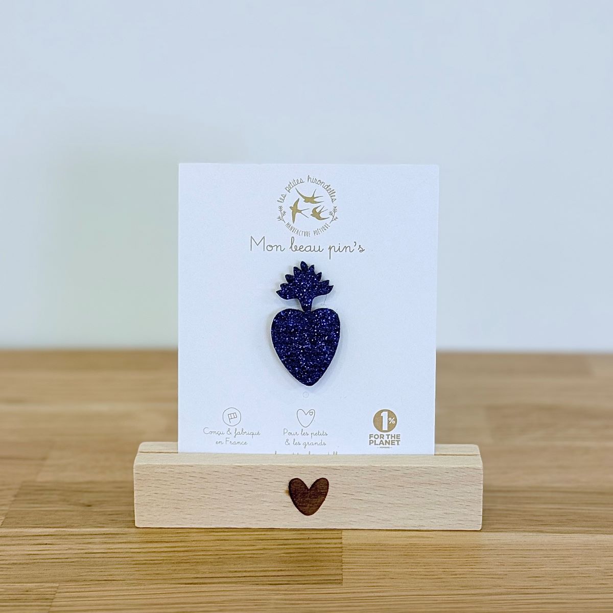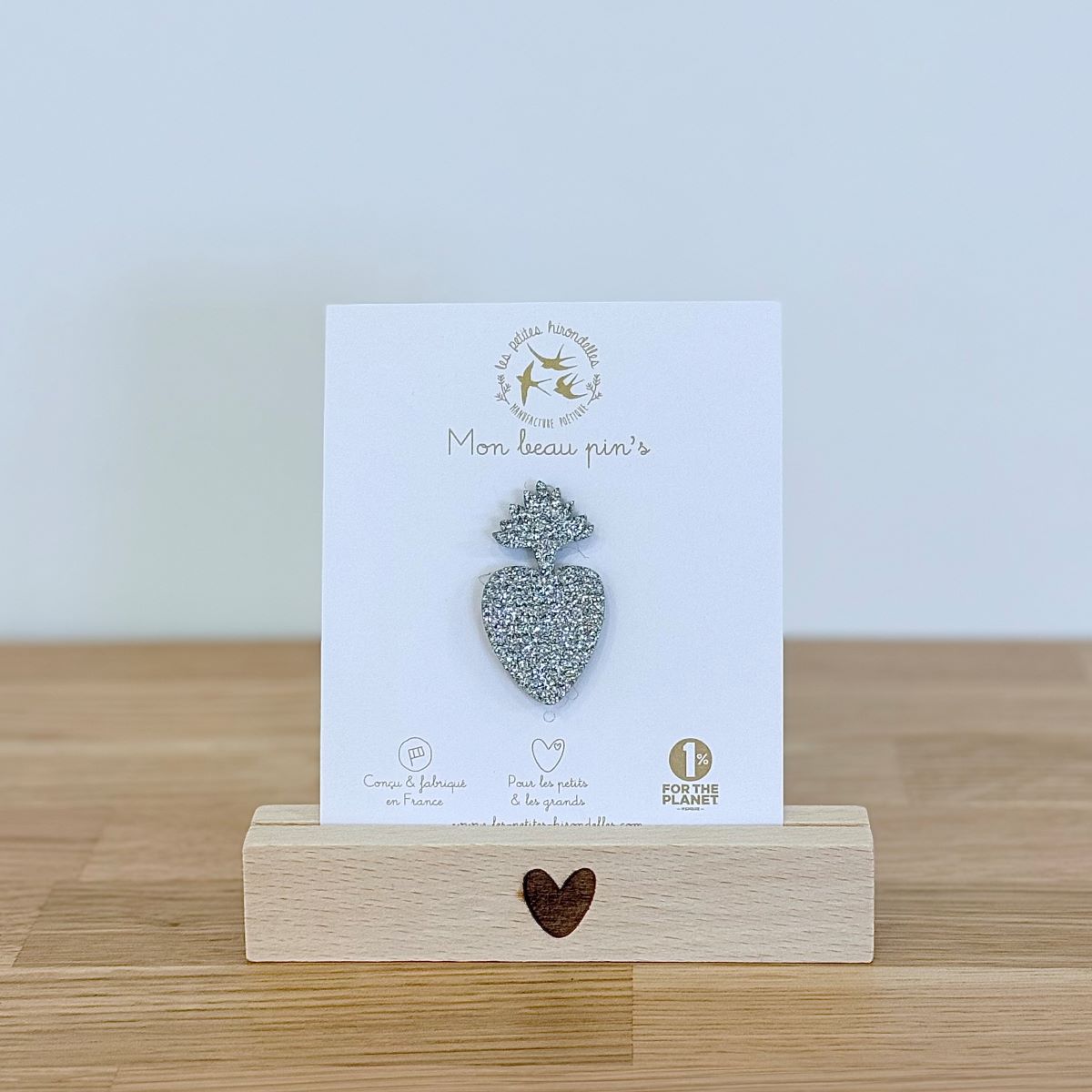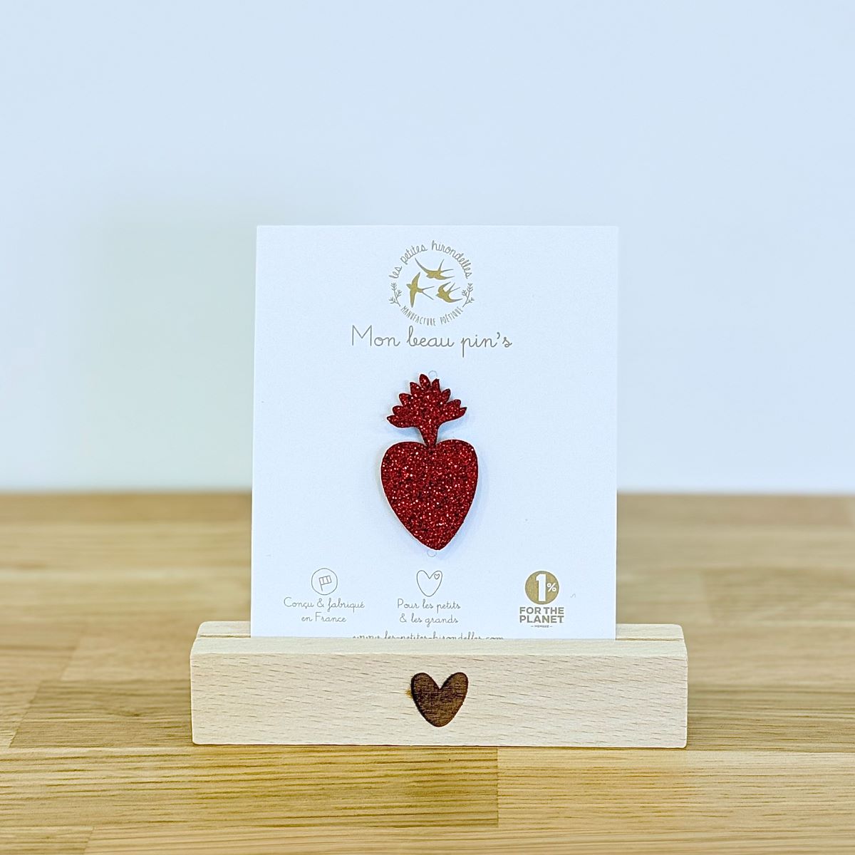 Ce pin’s sacré cœur est en feutrine et paillettes, avec une attache métallique. Il a été dessiné et fabriqué dans notre atelier près d’Annecy, en France.